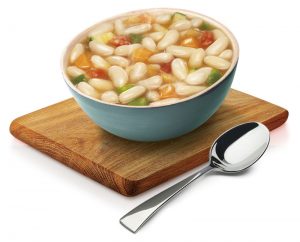Alubia blanca Navy (25%), maiz dulce, pimiento rojo, verde, zanahoria y aceituna verde