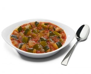 Tomate, calabacín, pimiento, cebolla, aceite de girasol, ajo, sal y azúcar